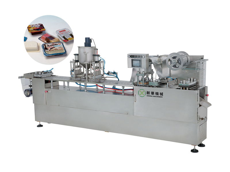 本机属于我厂自主创新、研制生产的新型食品包装设备,适用于各自由流动液体的填充封口,如番茄酱、果酱、巧克力酱、牛油等;也适于饼干、糖果、片剂、胶囊等的填充。